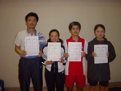 | 1 | 黒木 慎(日向クラブ) 藤原 きよみ(日向クラブ) | 2( 3-11 11- 7 11- 6)1 | 押川 倫憲(佐土原高校) 黒木 恵美子(佐土原高校) |