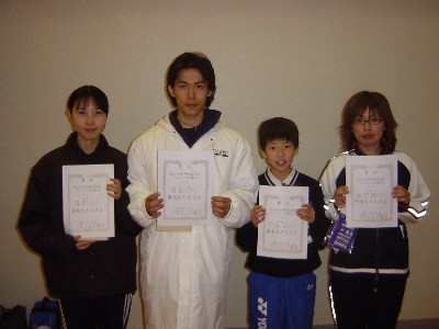 | 3 | 岡山 晃大(附属小クラブ) 谷口 奈緒美(附属小クラブ) | 2(11- 1 13-11)0 | 宮路 貞文(スコット) 金川 博美(スコット) |