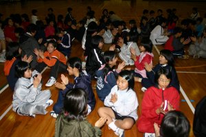 夜は、体育館でレクレーション。これで、みんなとグッと仲良くなることができました。