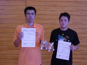 | 15 1回戦 | 大重 健太郎(都城クラブ) 永久井 賢一(都城クラブ) | 2(15-10 15-11)0 | 桑原 賢一(宮崎大学) 関岡 潤(宮崎大学) |
