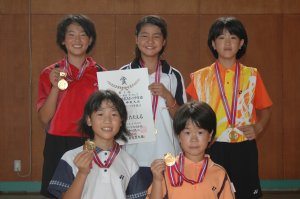 | 1 | 西池ジュニアA 宮崎 みなみD・後藤 桃子D 塚原 愛加E 小松 茅那美D・荒木 志保D | 3 | (S1-0 D2-0) 1(21- 3)0 1(15- 2)0 1(21- 3)0 | 0 | しおみキャッツB 黒原 潤子E・黒木 佳奈E 早田 晃子E 河見 さやかD・黒木 聖佳C |