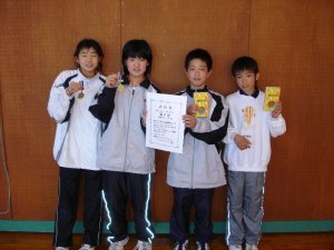 | 5 準決勝 | 大淀D 橋口 里美C 小野川 とうこB・岩切 彩B 黒木 香那B | 2 | (S1-0 D1-0) 2(15- 2 15- 1)0 2(15- 2 15- 7)0 打切 | 0 | 妻南小D 青山 裕美C 中嶋 すずなC・松岡 明音C 竹山 美紗子C |
