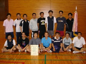 | 17 決勝 | 西都市 原口 和盛A・本部 崇仁A 牧野 諭A・若松 宏冶A 河野 泰典B・原田 英輝B 黒木 弘志C・村上 俊郎C 吉野 幸一D・泊 宗利D 若松 宏冶A 緒方 俊彦B | 4 | (S1-0 D3-2) 2(21-17 21-23 21-16)1 2(21-17 14-21 21-16)1 2(22-20 21-15)0 1(17-21 21-17 17-21)2 0( 9-21 9-21)2 2(21-17 21-12)0 0(17-21 1- 1)0打切 | 2 | 宮崎市A 有馬 由顕A・人見 旭A 山内 勉A・外山 聡人A 飯干 春喜B・大津 圭一朗B 本村 真二C・川上 陽一C 西牟田 一幸D・津守 伸明D 有馬 由顕A 松岡 弘高B |