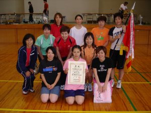 | 3 2回戦 | 児湯郡 児玉 亜理沙A・田原 順子A 一川 由菜A・小泉 蘭A 山崎 恵美B・甲斐 清美B 北 孝子C・砂川 陽子C 花吉 きよみD・永目 和代D 児玉 亜理沙A 山崎 恵美B | 6 | (S2-0 D4-1) 2(21- 9 21- 9)0 2(16-21 21-17 21-19)1 2(21-16 11-21 21-12)1 0(20-22 16-21)2 2(18-21 21-18 21-17)1 2(21- 9 21-12)0 2(21-16 21-11)0 | 1 | 延岡市B 田中 昌子A・柴田 幸代A 柳田 和子A・西原 恭子A 甲斐 晴美B・佐藤 典子B 姫野 生子C・浜砂 喜久美C 高橋 弘子D・真鍋 泉D 柳田 美樹A 佐藤 典子B |