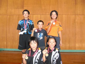 | 6 | 妻北ジュニアB 浜砂 健郎C・五六 友裕C 本部 美優B 吉本 那美B・安藤 朱音B | 2 | (S1-0 D1-1) 2(13-15 15- 8 15-12)1 2(15- 6 15- 8)0 1(10-15 15-13 14-15)2 | 1 | 三股バードウィングC 川野 春香E・上石 由李佳E 下石 真由香E 加藤 涼帆C・児玉 ありさC |